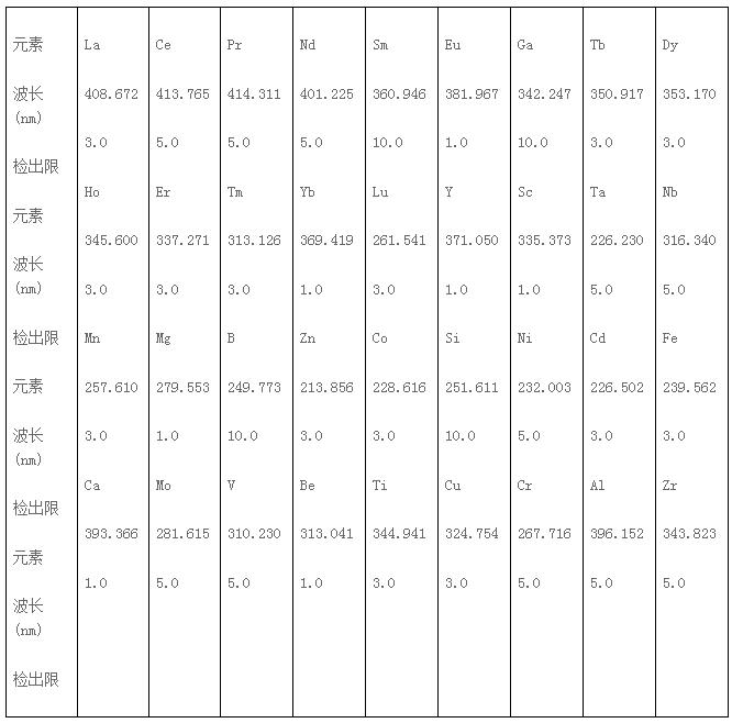 檢出限低:(代表元素檢出限如下表)